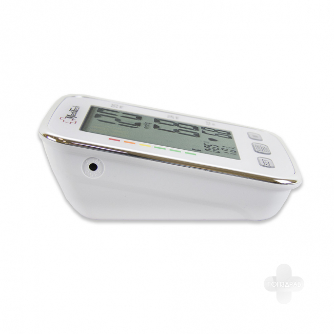 Тонометр МТ-50 автоматический с увеличенной манжетой 22-40 сантиметров, с подсветкой экрана. Имеет технологию интеллектуального измерения IQ SYSTEM, благодаря которой прибор сам определяет уровень накачки манжеты. Дисплей с подсветкой. Есть индикаторы аритмии, уровня давления по классификации ВОЗ и низкого заряда источника питания. Тонометр может рассчитывать среднее значение от 3-х последних измерений. Семейный вариант, т.к. память состоит из двух блоков по 60 измерений каждый, что очень удобно, если кому-то из семьи требуется вести статистику своих результатов измерений. При наличии отдельного блока памяти результаты измерений такого человека будут храниться в отдельном блоке памяти прибора. Их можно просмотреть и вычислить средний результат. Тонометр может работать как от батареек, так и от сети.